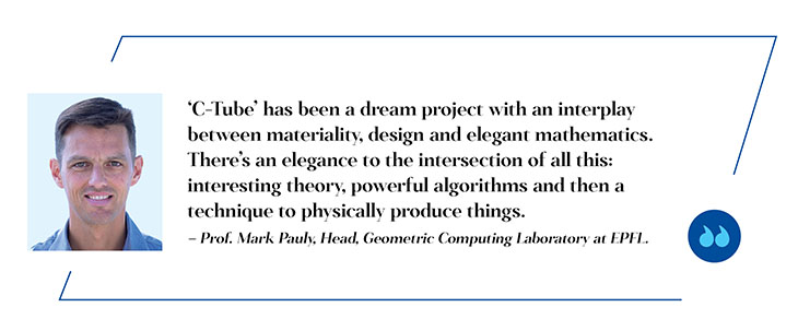 Overall, Pauly concludes, ‘C-Tube’ has been a dream project to work on with an interplay between materiality, design and elegant mathematics. “There’s an elegance to the intersection of all this – interesting theory, powerful algorithms and then a technique to physically produce things,” he concluded.